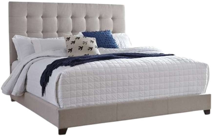This queen upholstered bed is sure to awaken a love for modern platform styling with a softer side. Plush to the touch and so easy on the eyes, a pale beige fabric hugs the bed—from the chic headboard with square button tufting, to the low footboard and side rails.Read More